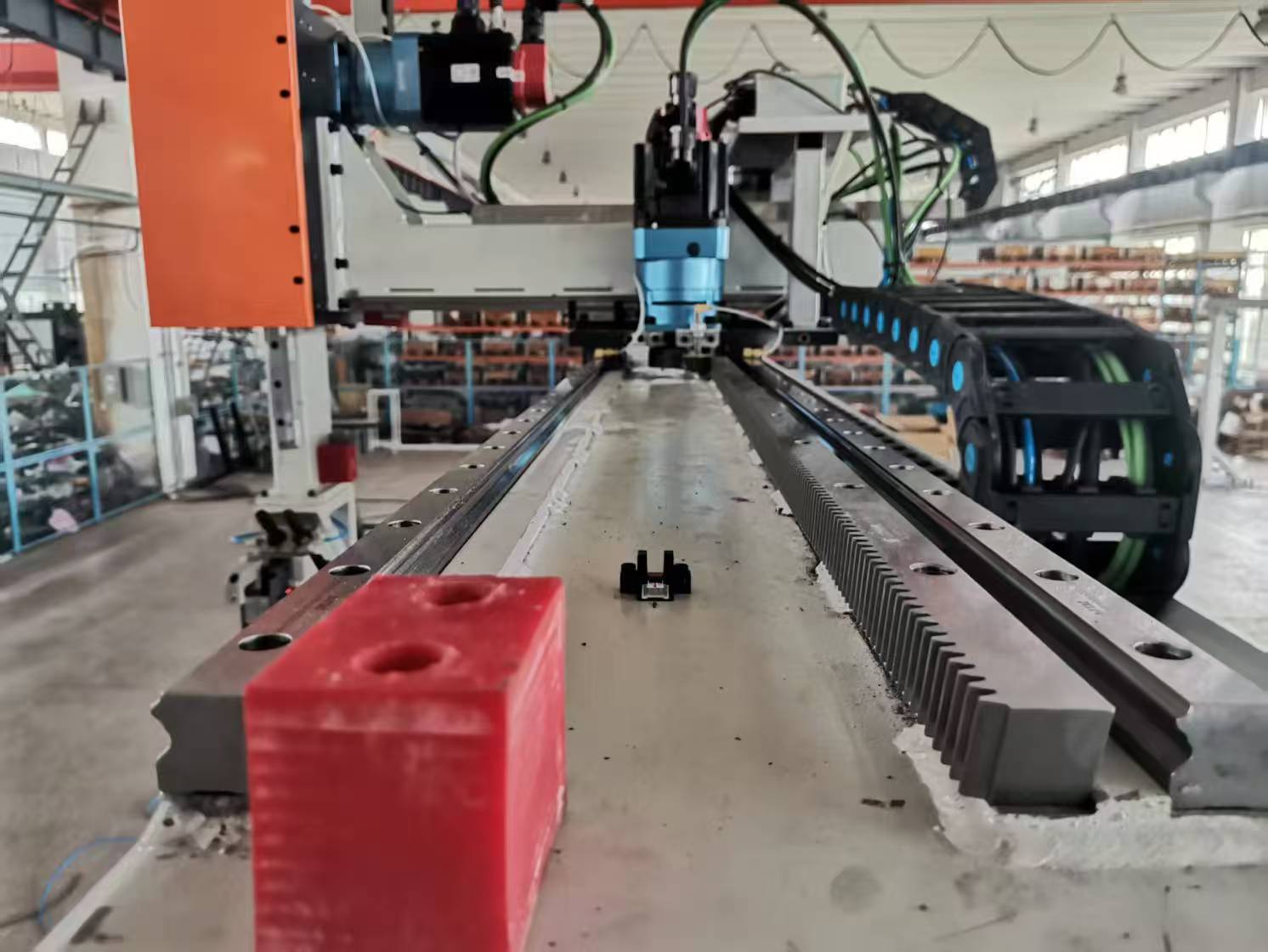 橫梁長度可達(dá)10米以上,可橫跨兩臺機(jī)床